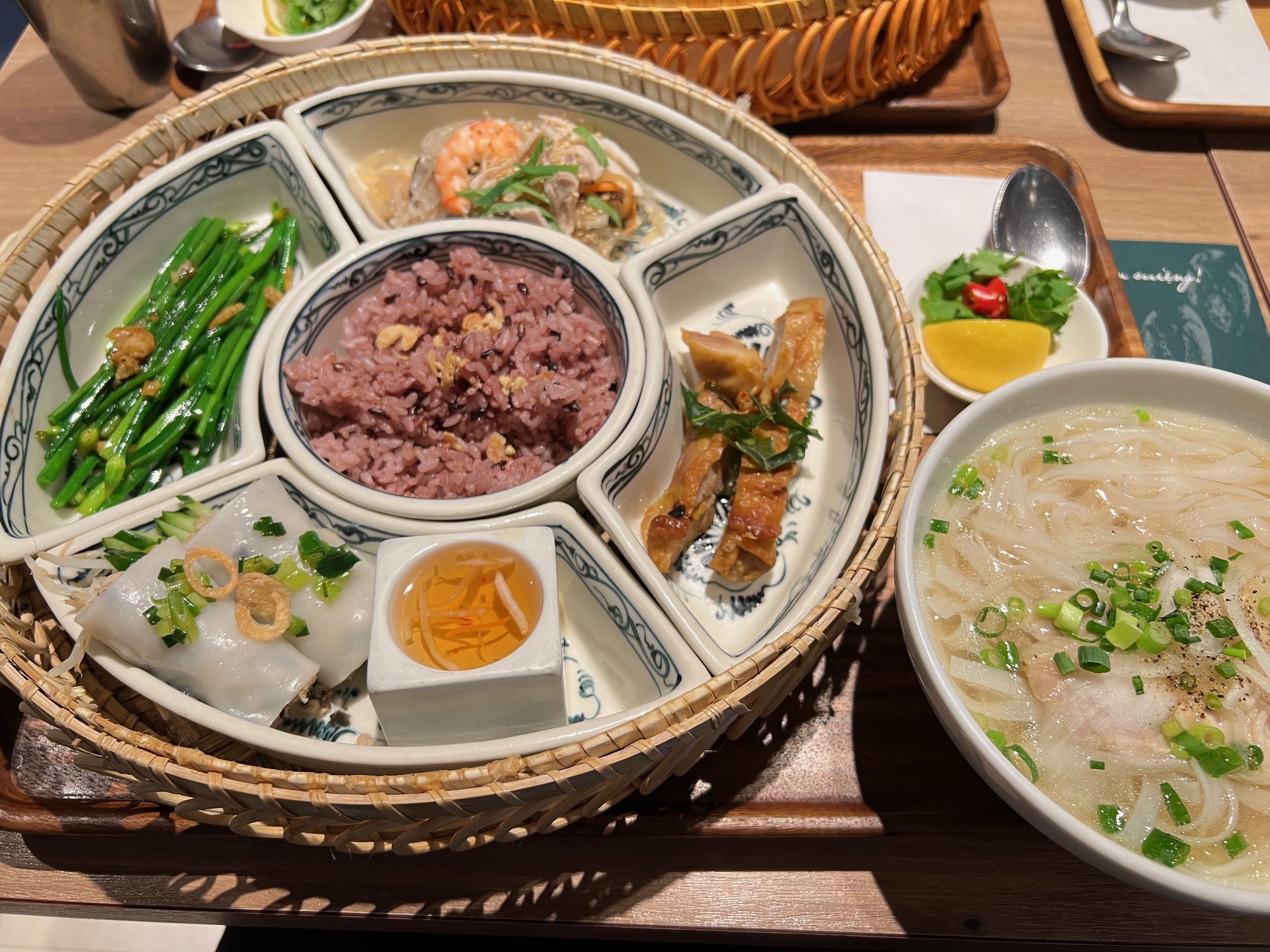 これは色とりどりの料理とフォー、それにデザートまで付いていてベトナム気分を満喫できるセットです。