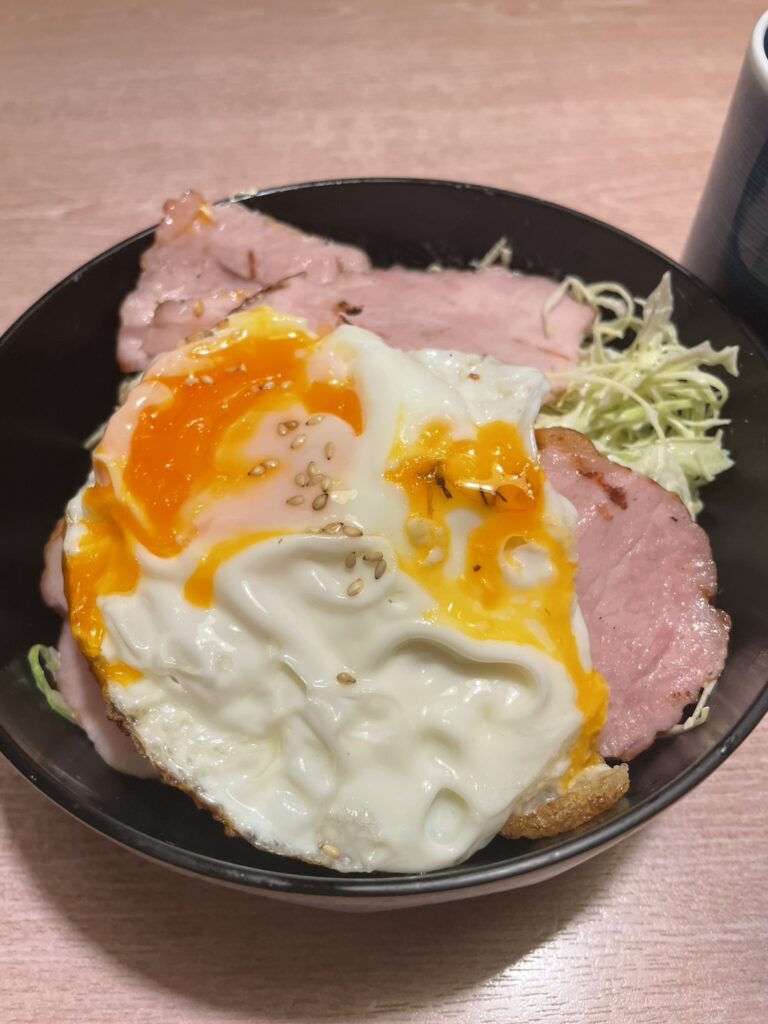要するに手早く作れてしっかり栄養も摂れるワンプレートの食事で、洋皿にご飯と目玉焼き、ハム、キャベツの千切り等を乗せたものにソースをかけていただくそうです。