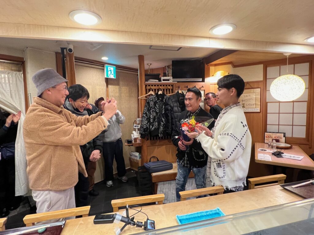 最終回ということでスタッフの皆さんから右團次親子さんに花束の贈呈もありました